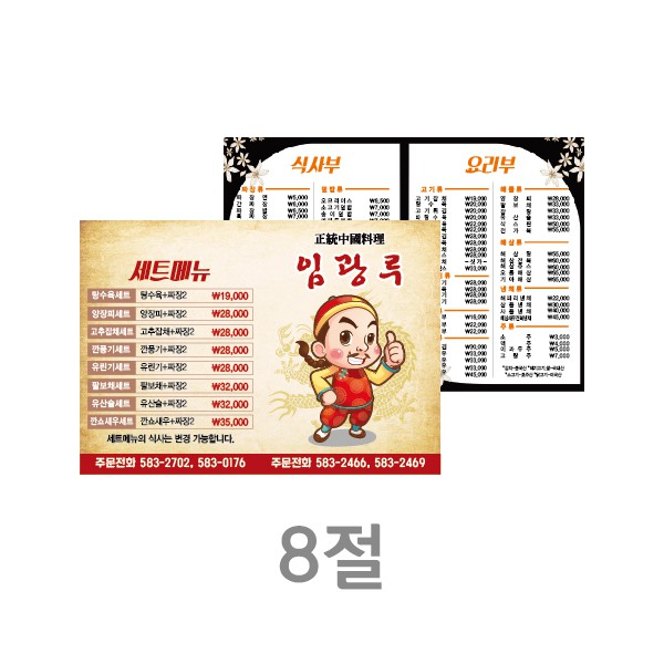 업소용 가게메뉴판 홍보물 메뉴책자 배달책자 중국집 메뉴판 8절
