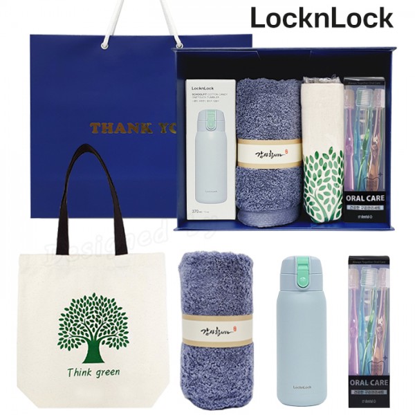 (데일리2호)락앤락 코튼캔디 텀블러 선물세트 송월타올 에코백 치과용칫솔세트