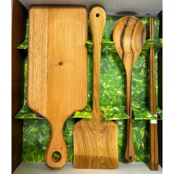 마호가니 플레이팅 도마 s +티크 조리도구 3종 세트 (뒤집개/튀김젓가락/볶음스푼)