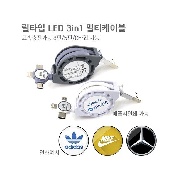 [세르페즈]릴타입LED 3in1 멀티케이블 QC3.0