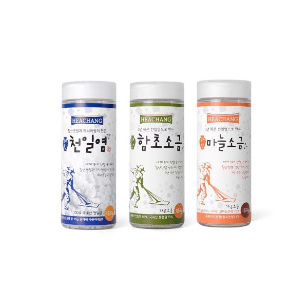 - 천일염 180g, 함초소금 180g, 마늘소금 180g/310 x 260mm