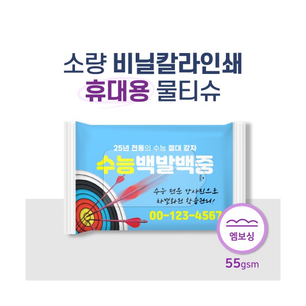 소량독판비닐인쇄 프리미엄 물티슈 10매 (55g 엠보싱)