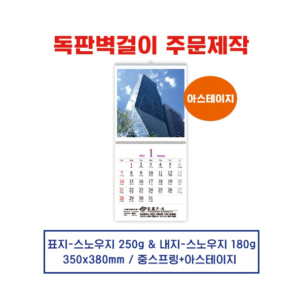 (20) 벽걸이 독판카렌다 달력 캘린더 주문제작 (350*380mm)