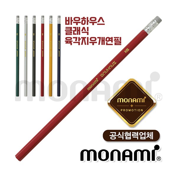 모나미-바우하우스 클래식 육각지우개연필(HB/B/2B)