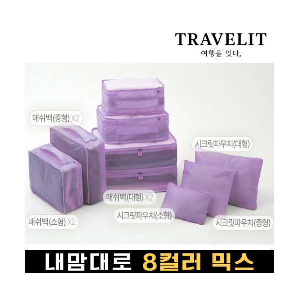 트래블잇 내맘대로 8컬러 믹스 여행용파우치 9종세트-퍼플