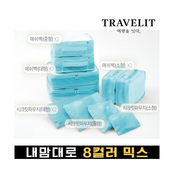 트래블잇 내맘대로 8컬러 믹스 여행용파우치 10종세트-스카이
