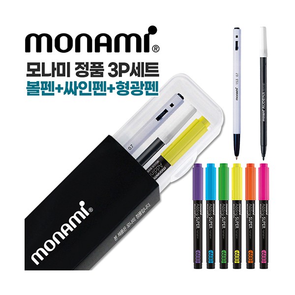 모나미 153볼펜0.7(흑)+어데나컴퓨터용싸인펜+에딩슈퍼형광펜600 3P세트