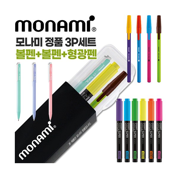 모나미 트리피스파스텔0.7+153스틱비비드0.7+에딩슈퍼형광펜600 3P세트