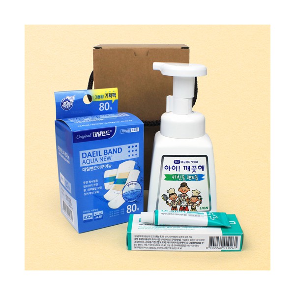 가정필수품 대용량 아쿠아 방수밴드 혼합 80매 + 닥터스킨 연고 +주방전용 키친 핸드워시 아이깨끗해 + 끈케이스