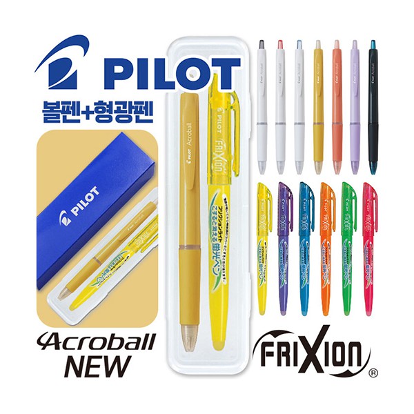 파이롯트 뉴아크로볼볼펜0.5+지워지는프릭션라이트형광펜세트
