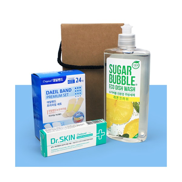 - 슈가버블 주방세제 + 대일밴드 프리미엄 24매 세트 (오리지널 표준8대형4+방수아쿠아 표준8대형4) + 닥터스킨 연고 + 끈케이스
