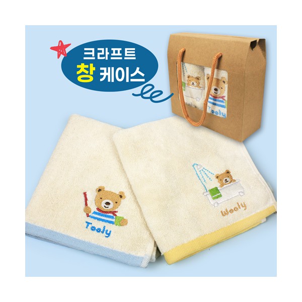 - 울리 프렌즈 자수 고리수건 핸드타올 2개 + 종이케이스
