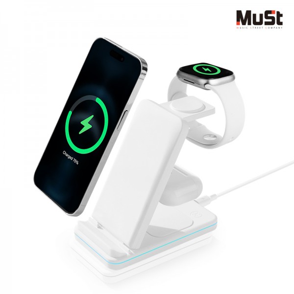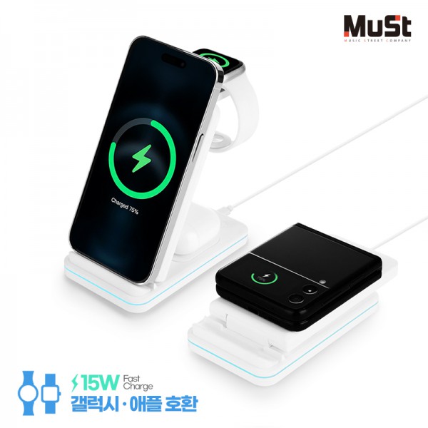 뮤스트 브릿지 갤럭시/애플 호환형 3in1 멀티 고속 무선 충전기
