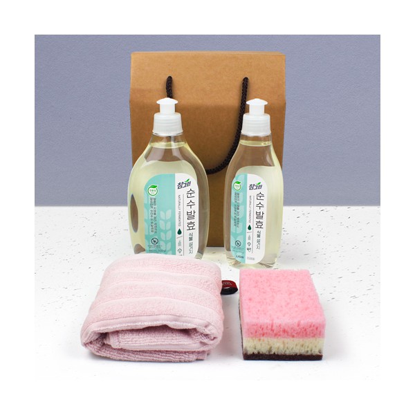 - 참그린 식물설거지 주방세제 480ml+290ml + 골지 고리 주방타올 + 떡수세미 + 끈케이스