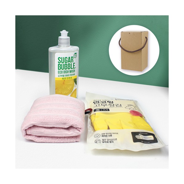 - 슈가버블 친환경 주방세제 + 순면 고급 골지 주방타올 + 면코팅 고무장갑 + 끈케이스