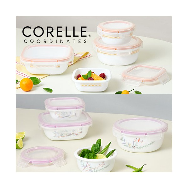 코렐_코디네이츠 밀크글라스 밀폐용기 혼합 4종 (산호세/자카드밴드)
