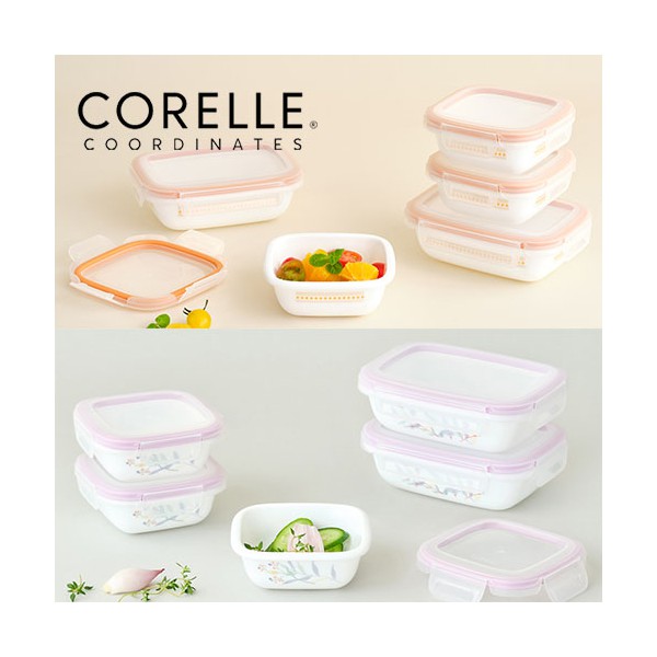 코렐_코디네이츠 밀크글라스 밀폐용기 혼합 5종 (산호세/자카드밴드)