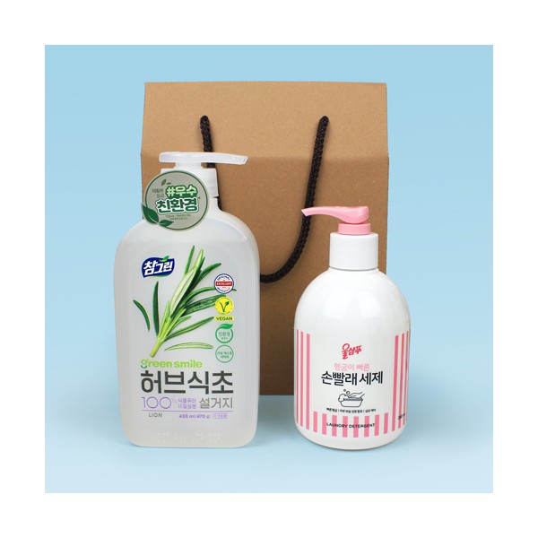- 참그린 친환경 프리미엄 주방세제 허브식초 470g + 애경 손빨래 울샴푸 펌프형 380ml + 끈케이스