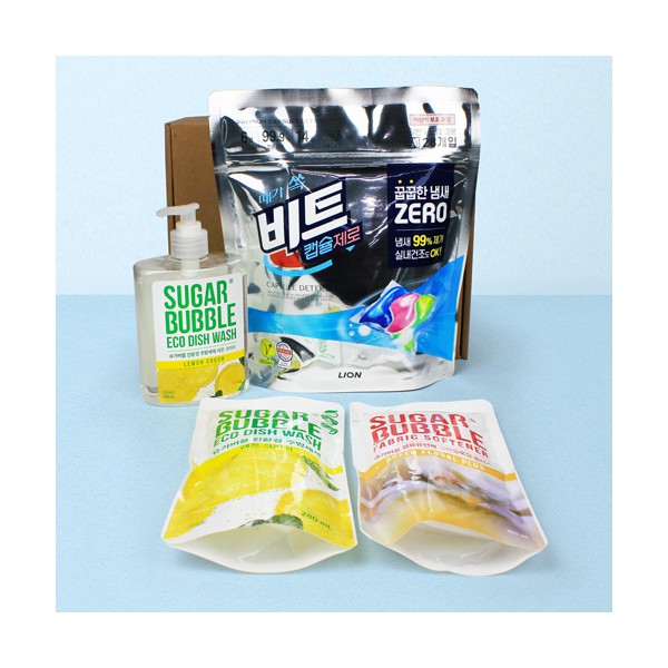 - 비트 캡슐세제 28입+슈가버블 주방세제 470ml 펌프형+주방세제 리필 280ml+섬유유연제 리필 300ml+끈케이스