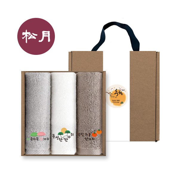송월타올 추석 핸들 패키지 3매입 세트 NO.2 (호텔수건 150G 30수 3매+띠지)