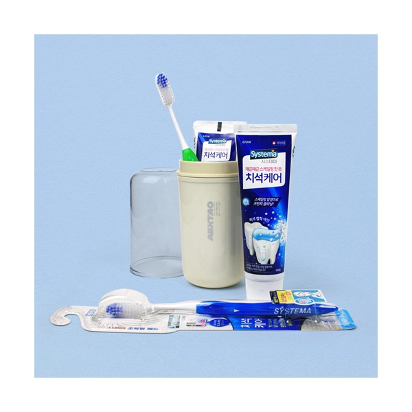 - 시스테마 치석케어 치약 120g + 특수모 초극세모 치석케어 칫솔 + 휴대용 양치컵 + 종이케이스