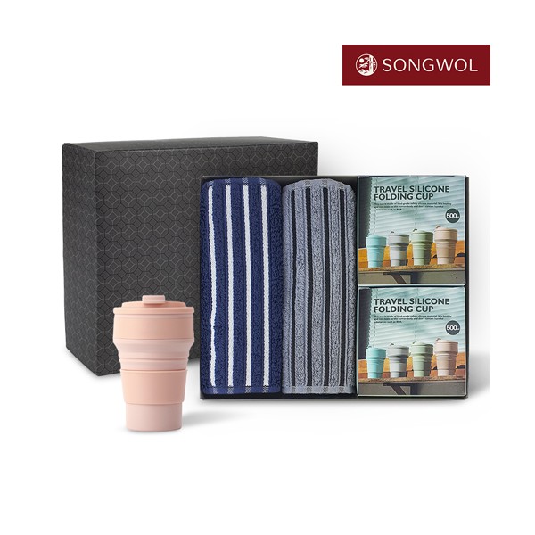 송월타올 리빙 기프트세트 27 (CM포라인스포츠타올 2P + 실리콘텀블러500ml 2P)