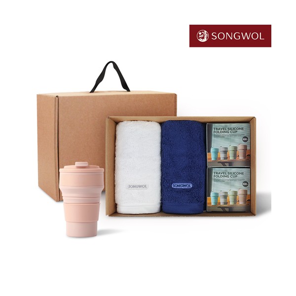 송월타올 리빙 기프트세트 34 (40수포인트타올 200g 2P + 실리콘텀블러500ml 2P)