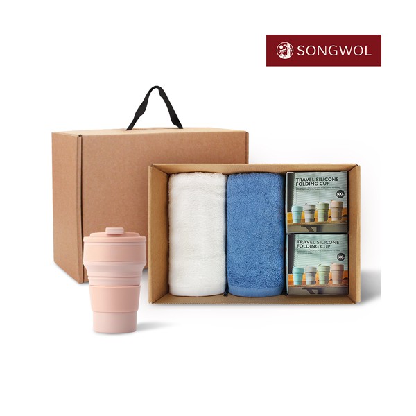 송월타올 리빙 기프트세트 35 (프리미엄뱀부무지 180g 2P + 실리콘텀블러500ml 2P)