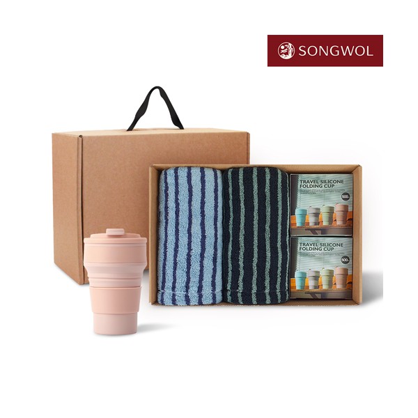 송월타올 리빙 기프트세트 40 (호텔컬렉션 스트라이프44 2P + 실리콘텀블러500ml 2P)