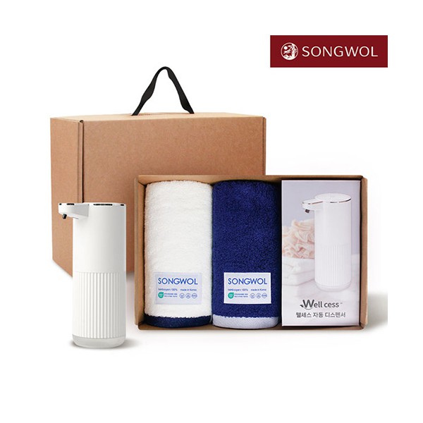 [송월타올] 디스펜서 기프트세트 11, 뉴 바이브 뱀부 220g 2P + 웰세스 디스펜서 360ml 1P
