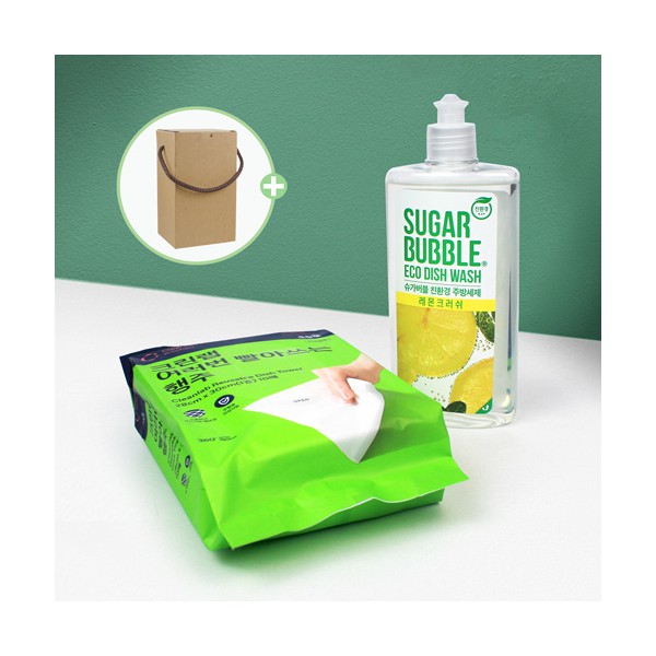 - 크린랩 빨아쓰는 행주 10매입 + 슈가버블 주방세제 2종 세트 + 끈케이스