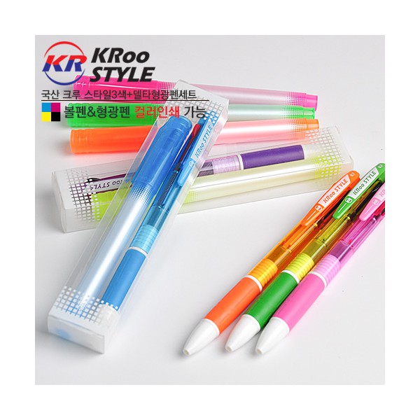 국산 크루 스타일3색 델타형광펜 페트케이스세트
