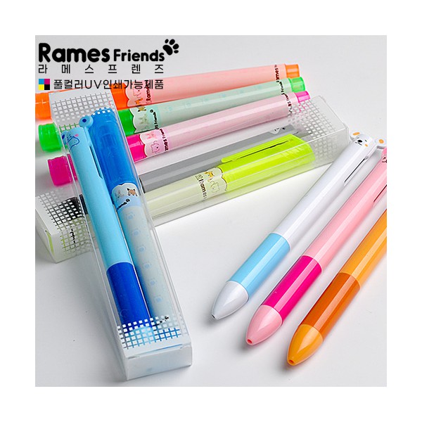 라메스프렌즈 형광펜 2색볼펜 페트케이스세트