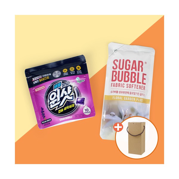 슈가버블 버블원샷 캡슐세제 10매입 + 슈가버블 섬유유연제 + 끈케이스