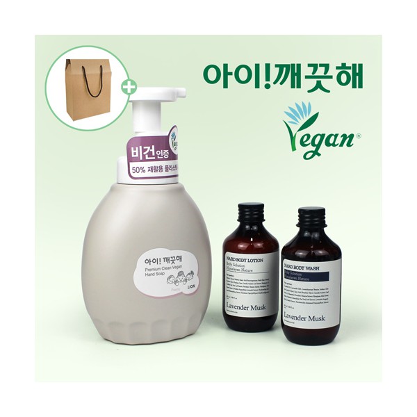 핸드워시 아이깨끗해 프리미엄 클린 비건 450ml + Nard 나드 바디워시 + 바디로션 + 끈케이스 + 케이스 이미지 변경 가능