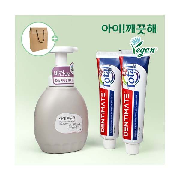 핸드워시 아이깨끗해 프리미엄 클린 비건 450ml 덴티메이트치약 3종세트