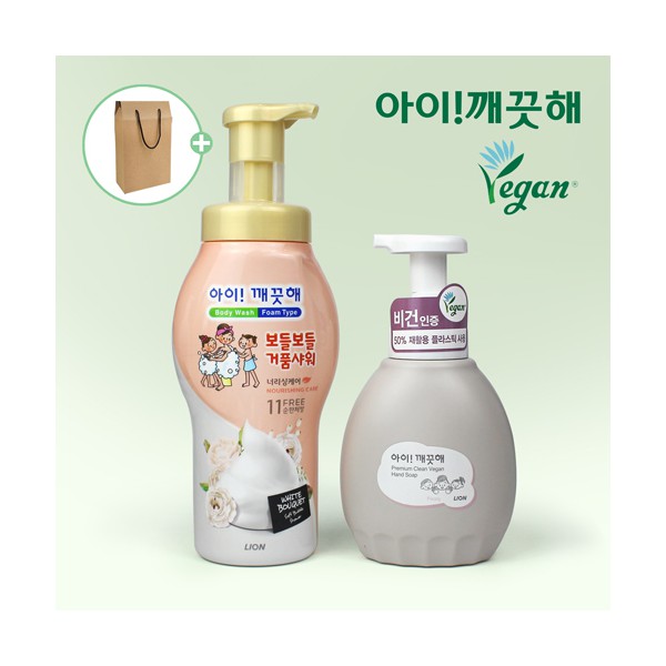 - 아이깨끗해 보들보들 거품샤워 바디워시 700g + 아이깨끗해 프리미엄 비건 핸드워시 450ml + 끈케이스