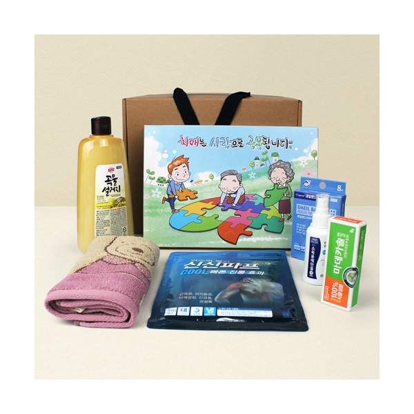 - 치매 증상/예방 홍보 주방위생 3종세트 + 애경 곡물 주방세제 500ml + 기라로쉬 울리 주방타올 고리타올 + 신신파프 5매입 + 대일밴드 아쿠아 방수 혼합8매 + 에탄올 소독제 스프레이형 + 마데카솔 연고 + 끈케이스