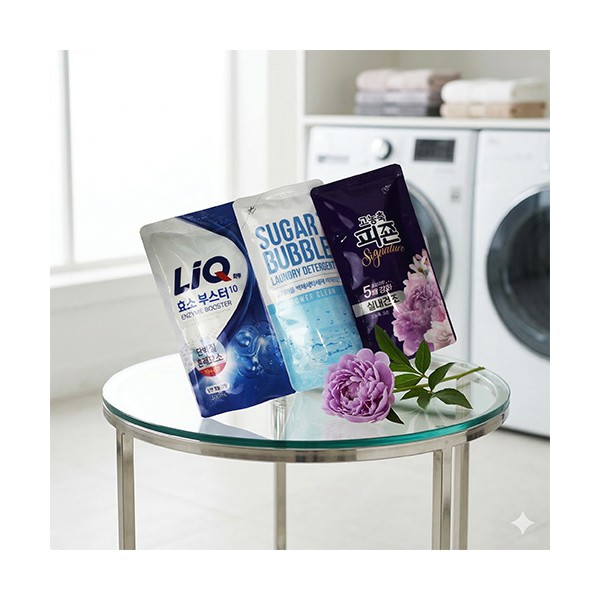 - 세탁세제 3종세트 애경 리큐 + 슈가버블 세탁세제 + 피죤 섬유유연제 + 끈케이스 + 케이스 변경 가능