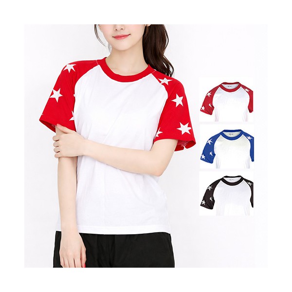 남자 여자 단체 포인트 30수 면 나그랑 별 스타 무늬 반팔 티셔츠