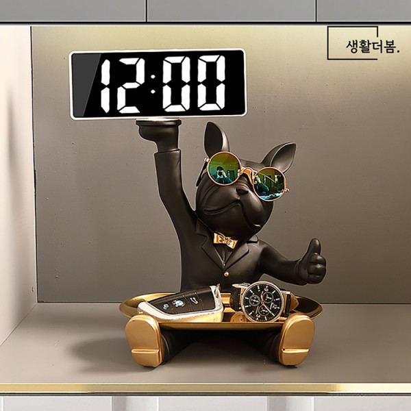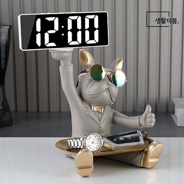 생활더봄 불독 인테리어 장식 트레이 LED 시계 차키보관함 4 color