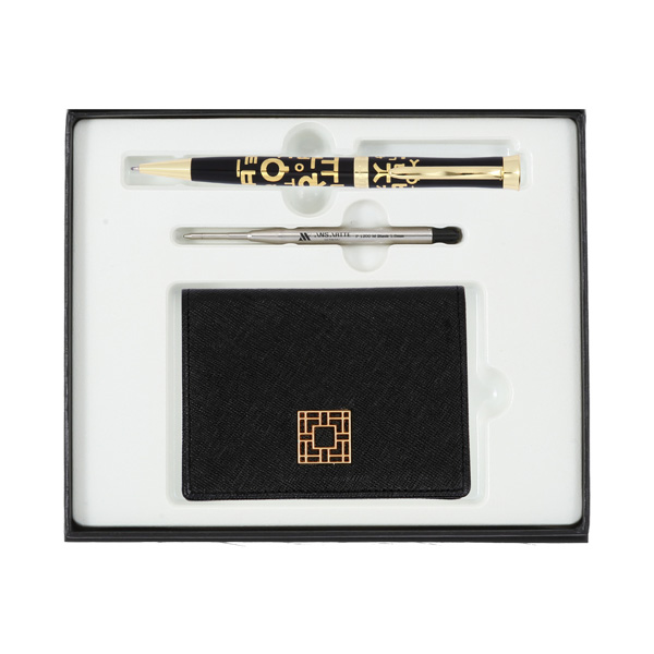 한글볼펜+리필심+완자문소가죽명함지갑