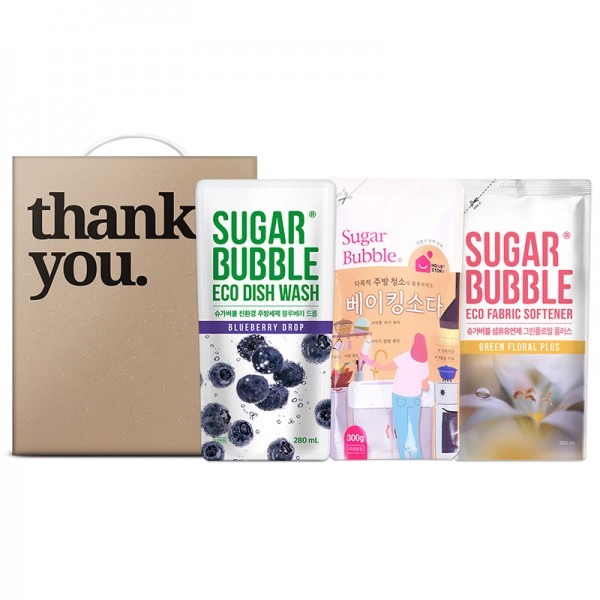 슈가버블 리필 3종 3호 / 케이스 / 슈가버블 주방세제280ml 1개 섬유유연제280ml 1개 베이킹소다300g 1개