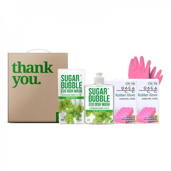 오손도손 친환경 주방 11호 / 케이스 / 오손도손 고무장갑L 2개 슈가버블 샤인머스캣주방 450ml 1개 슈가버블 샤인머스캣주방 280ml 1개