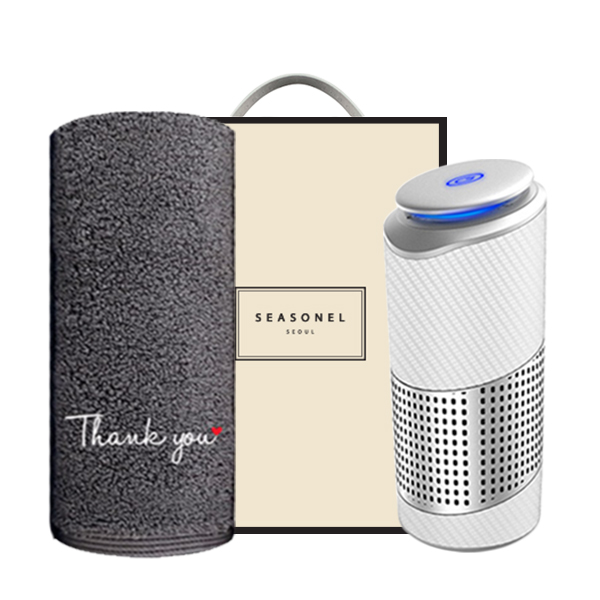 시즈넬 선물세트 송월타올 땡큐190g+차량용 공기청정기