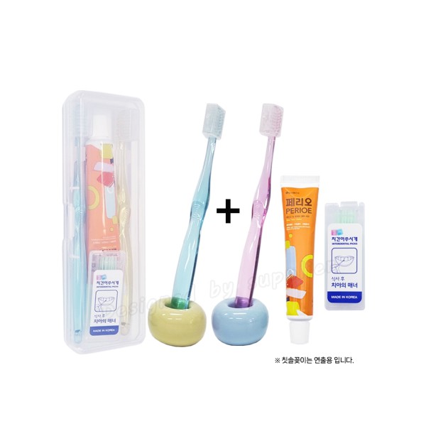 커플_치과용_크리스탈캡+페리오+치간_칫솔치약세트