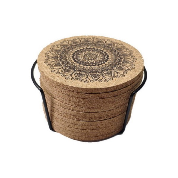 에코키친 열방지 만다라 무늬 코르크 컵받침 냄비 받침(L) CB693