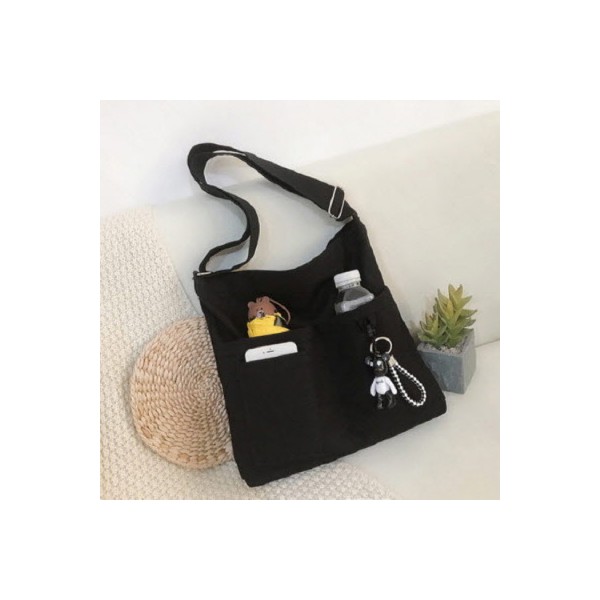 CC059 에코라이프 다기능 포켓 캔버스 크로스 학생 에코백 39X34X7cm