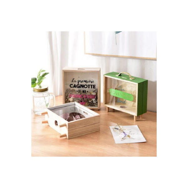 CC125 에코라이프 투명 원목사각 인테리어 장식용 저금통