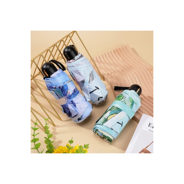 CH548 에코라이프 레터링 유화꽃 미니 UV차단 차양 수동양산 5단우산